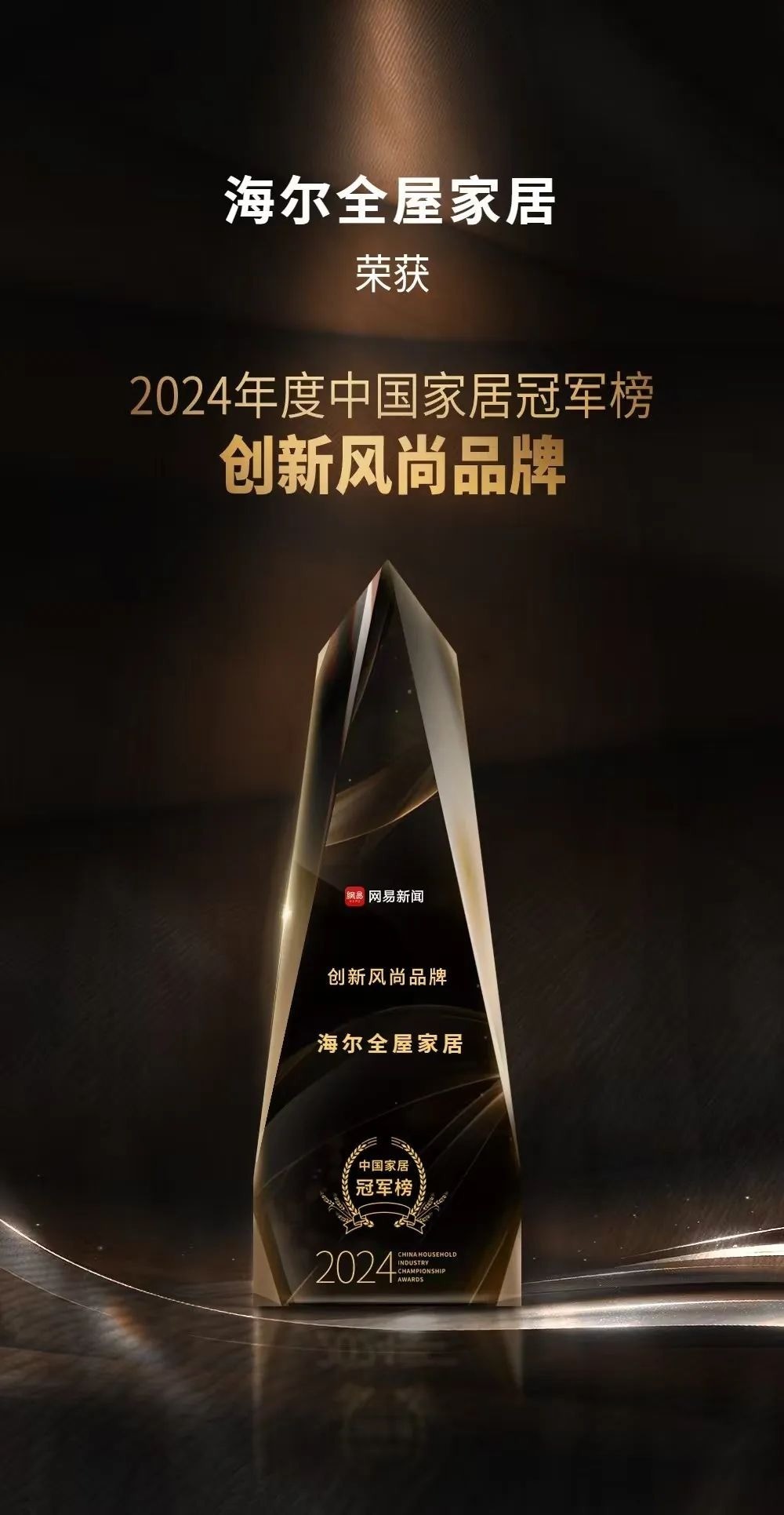 - 2025-03-09海尔全屋家居斩获 “2024 中国家居冠军榜创新风尚奖”,领航行业创新发展